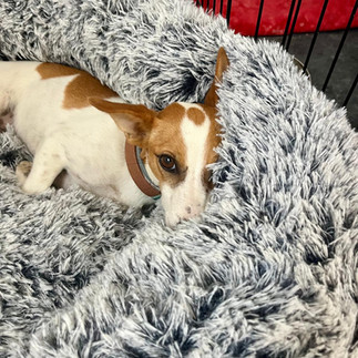 Estela ist eine bildhübsche, nur 6,5 kg leichte Hündin im zarten Alter von 1 Jahr. Anfangs zeigt sie sich schüchtern und unterwürfig, reagiert sensibel auf Ansprache – ob freundlich oder tadelnd. Mit etwas Geduld taut sie jedoch schnell auf und wird zu einer anhänglichen, verschmusten kleinen Begleiterin, die aktiv die Nähe ihrer Menschen sucht.