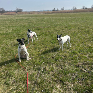 Lucio übt schon Sitz und bleib draußen auf dem Acker unter erschwerten Bedingungen 🙈 überall Feldhasen als Zuschauer
